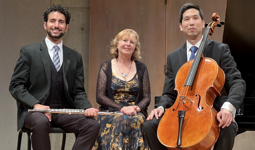 Wentworth Villa 1156 Fort Street, Victoria, BCArin Sarkissian, flute. Brian Yoon, cello. Monica Pfau, piano – Trios and duos by Goossens, Farrenc, Schumann, and Poulenc